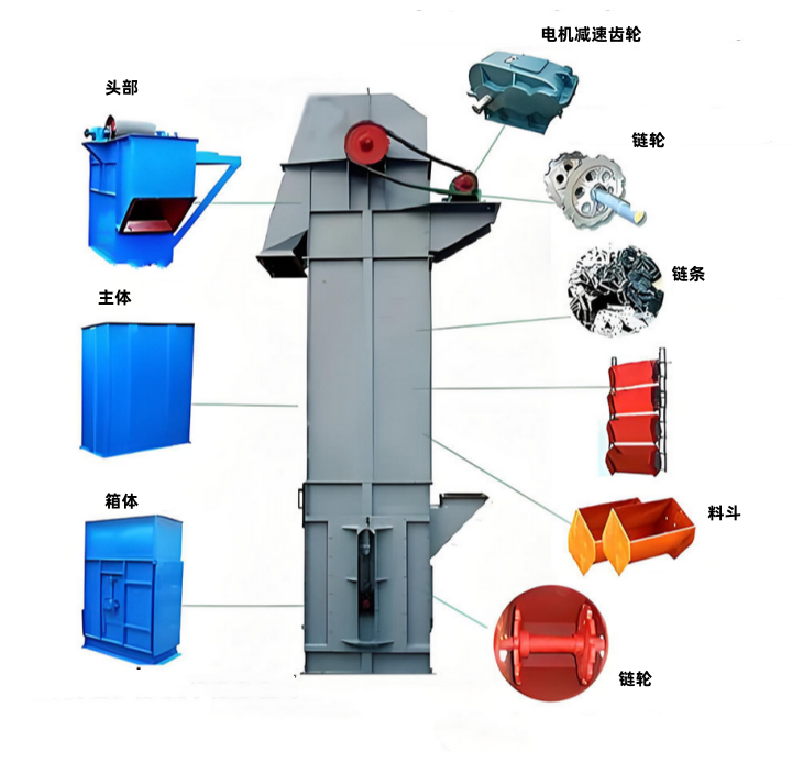 牽引構件:包括鏈條、板鏈或環鏈,是帶動料斗循環運行的關鍵部件,直接影響提升能力和使用壽命。