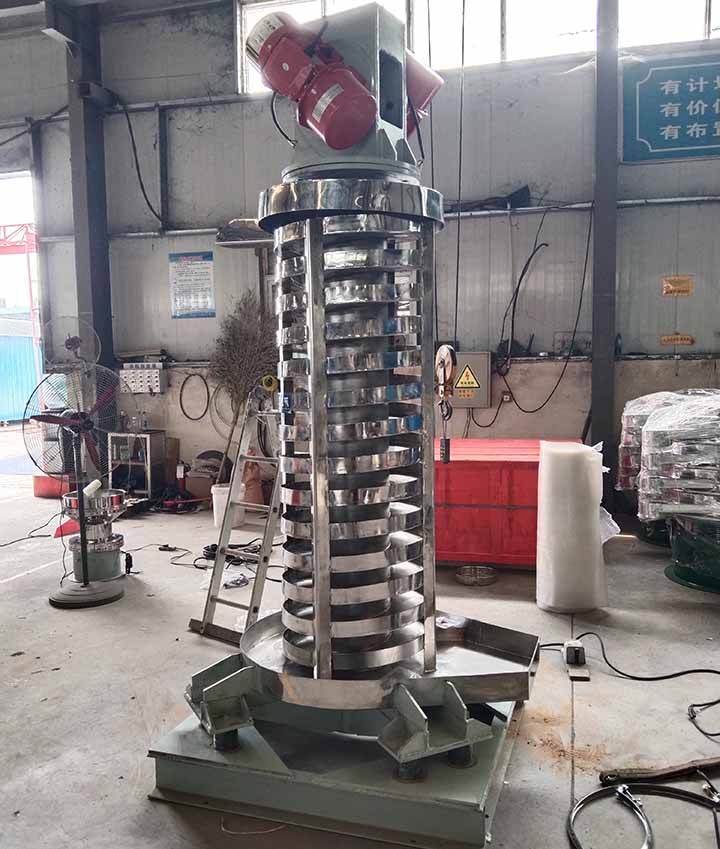 垂直振動(dòng)提升機(jī)是一種新型的垂直振動(dòng)輸送設(shè)備,本機(jī)對(duì)一切顆粒狀、塊狀、粉狀的固體物料(粘度不)都可以輸送。廣泛應(yīng)用于礦山、冶金、機(jī)械、建材、化工、橡膠、醫(yī)藥、電力、糧食、食品等行業(yè)的塊狀、粉狀和短纖維狀固體物料的提升,振動(dòng)輸送機(jī)在向上提升物料的同時(shí),還可以完成對(duì)物料的干燥和冷卻。分開槽式、封閉式兩種結(jié)構(gòu),并可根據(jù)不同的工藝要求,設(shè)計(jì)物料顆粒分級(jí)作用的篩選提升機(jī)及設(shè)計(jì)易燃易爆物料的提升機(jī)。