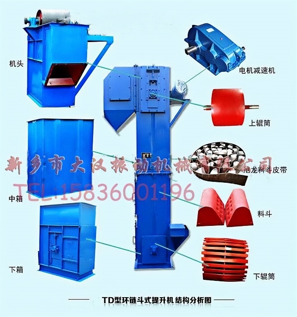2.提升范圍廣,TD型斗式提升機對物料的種類、特性要求少,不但能提升一般粉狀、小顆粒狀物料,而且可提升磨琢性較大的物料.密封性好,環境污染少。