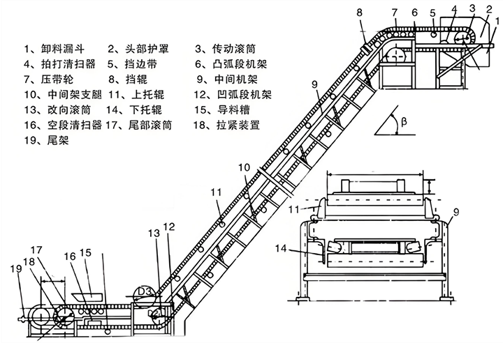 可以用于水平運輸或傾斜運輸,使用非常方便,廣泛應用于現代化的各種工業企業中,如:礦山的井下巷道、礦井地面運輸系統、露天采礦場及選礦廠中。根據輸送工藝要求,可以單臺輸送,也可多臺組成或與其他輸送設備組成水平或傾斜的輸送系統,以滿足不同布置形式的作業線需要。
